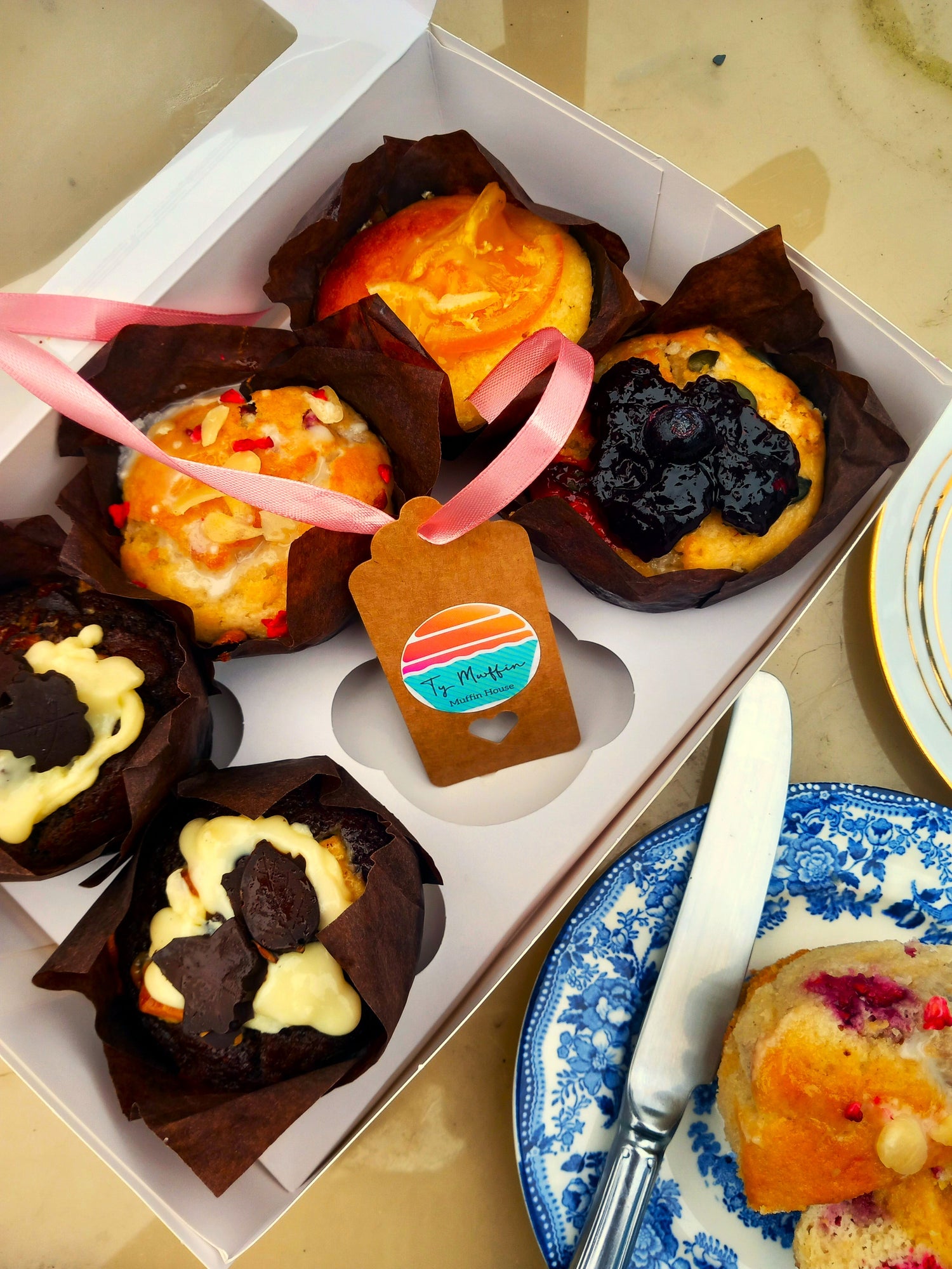 All my muffins and cakes are vegetarian, generous in size and handmade in small batches. You can order in boxes of 6, and choose any combination of flavours you fancy, including sweet, savoury, vegan and gluten free options. Royal Mail Tracked 24 delivery nationwide, usually next day, or pickup from my home in Fishguard. A lovely gift for friends and family, valued customers and colleagues, a picnic or a relaxed gathering. If you would like a special message or gift wrapping, it's included free!