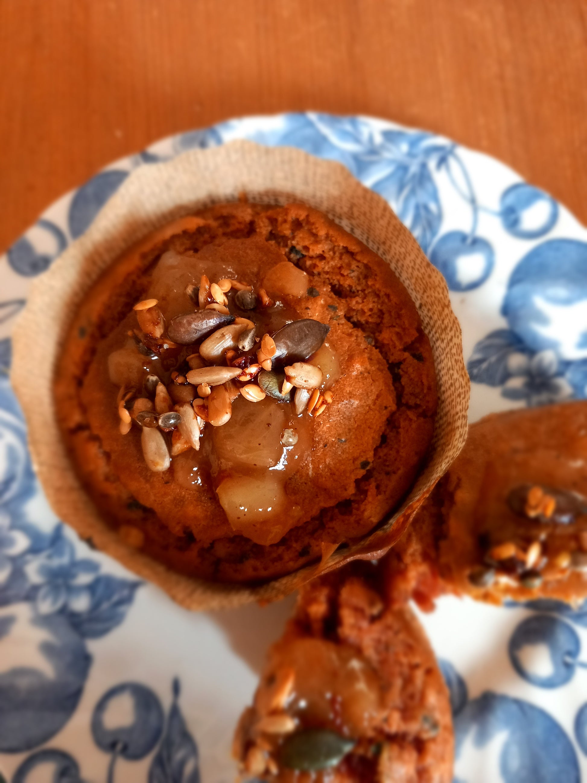 Vegan, lightly spiced and filled with a masala dosa style potato mix, topped with spicy mixed seeds (sunflower, pumpkin, linseed, hemp), mango chutney and Aleppo pepper flakes. Made with coconut yoghurt and oat milk.